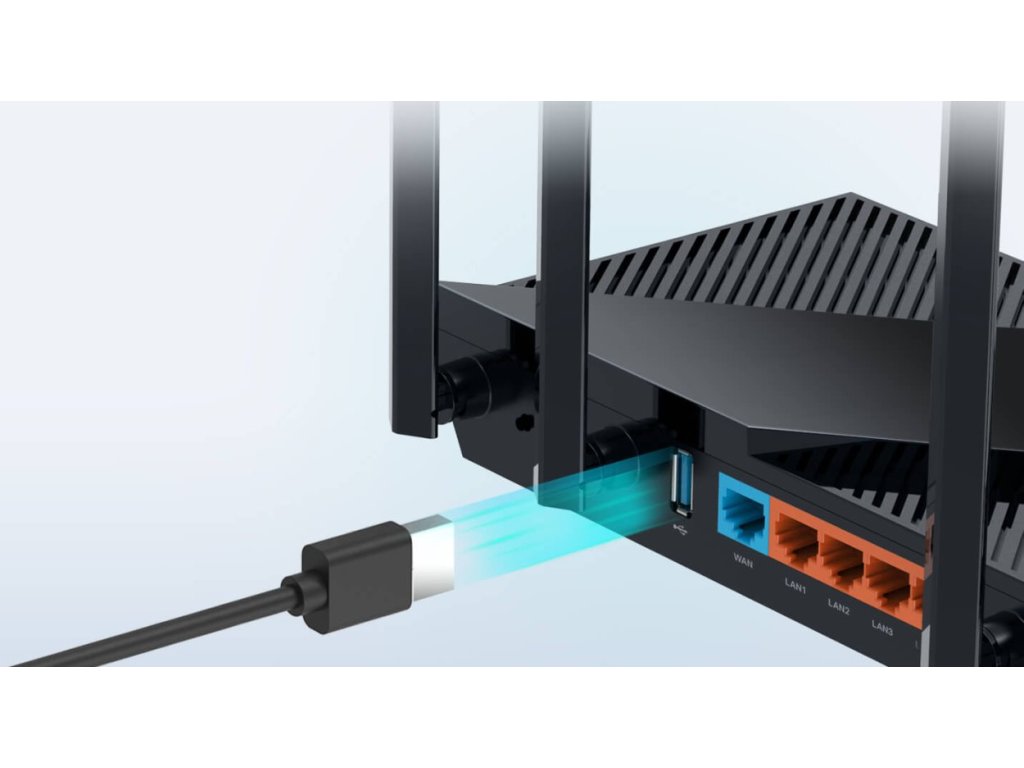 Porty: 1× Gigabit WAN, 4× Gigabit LAN, 1× USB 3.0